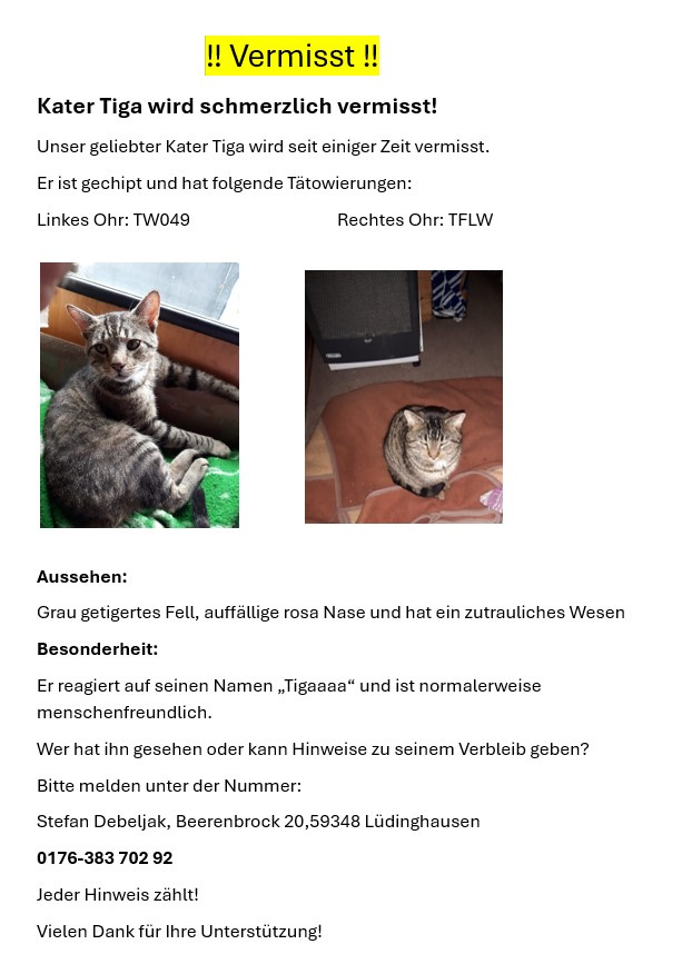Vermisste Tiere