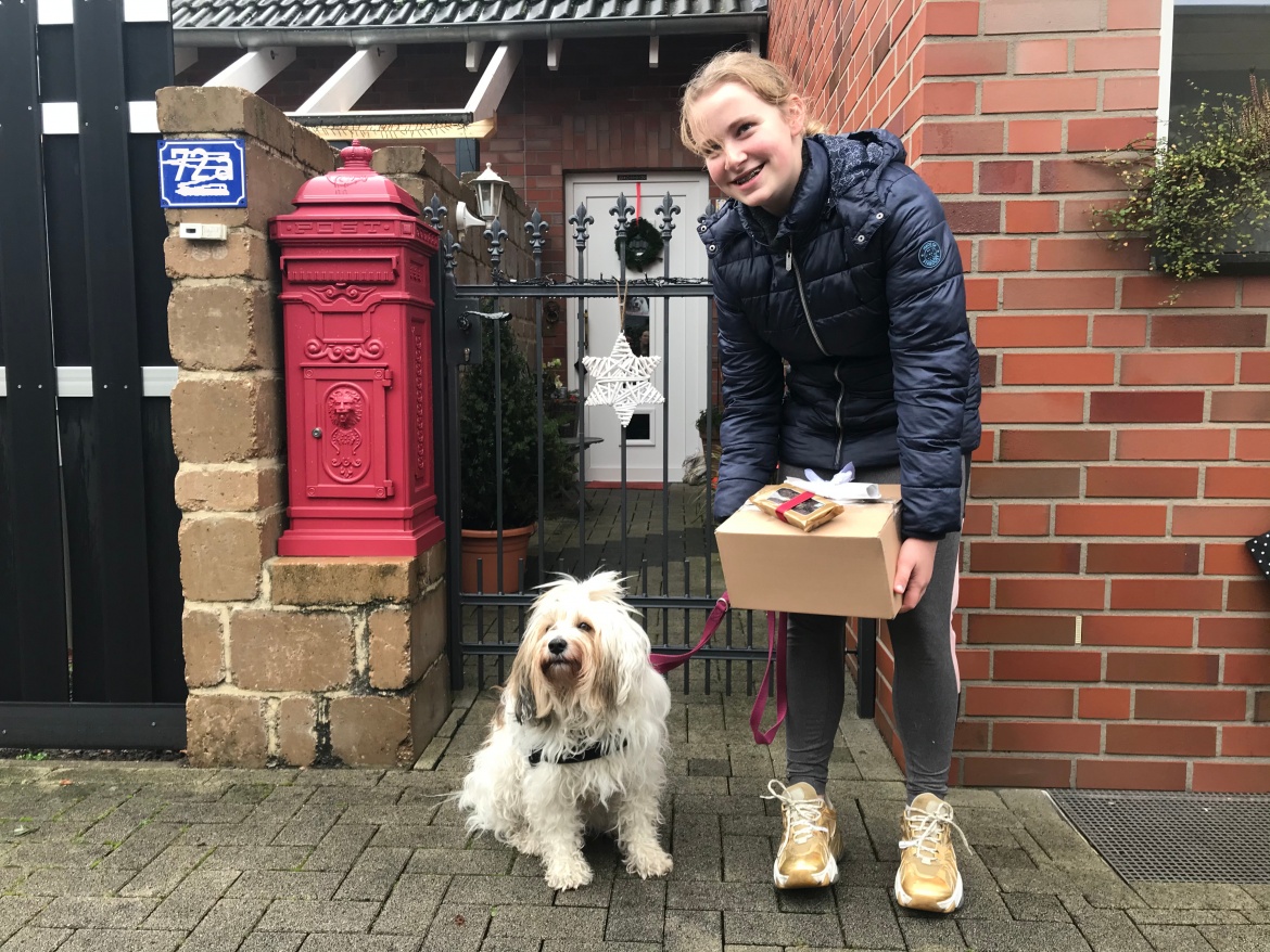 01.12.2020Lilly aus Nottuln ist Hundebesitzerin und hat ein großes Herz für Tiere. Wie schon im letzten Jahr hat sie von ihrem Taschengeld ein Weihnachtspaket mit allerlei tierischen Leckereien für unsere Tierheimtiere gepackt.