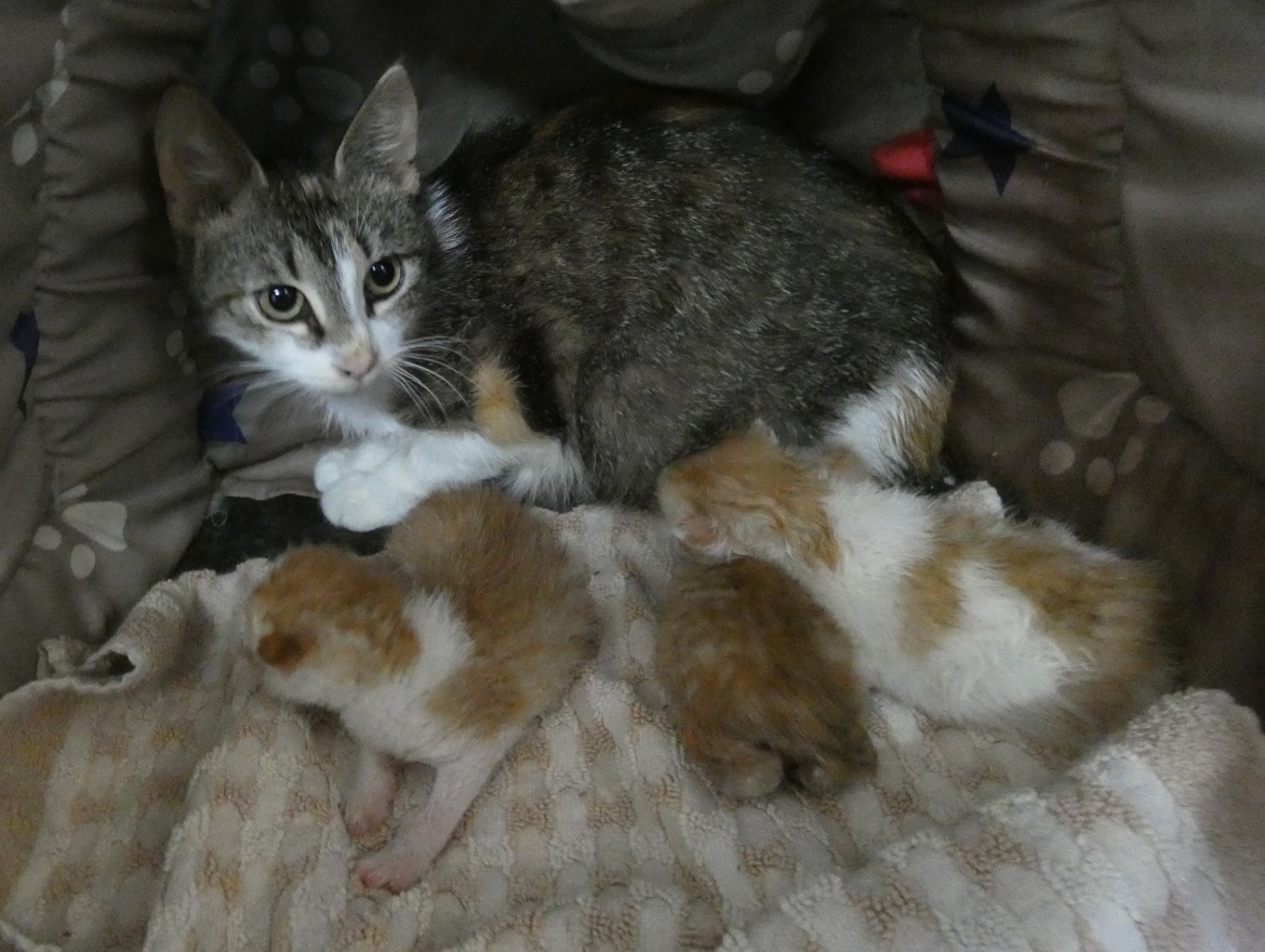 18.04.2021Leyla, so haben wir sie genannt, kam vor drei Wochen als Fundkatze zu uns ins Tierheim Lette. Sie war von Anfang an sehr zutraulich und menschlichen Kontakt gewohnt. Bald stellte sich heraus, dass sie trächtig ist und gestern hat sie drei Kitten das Leben geschenkt.