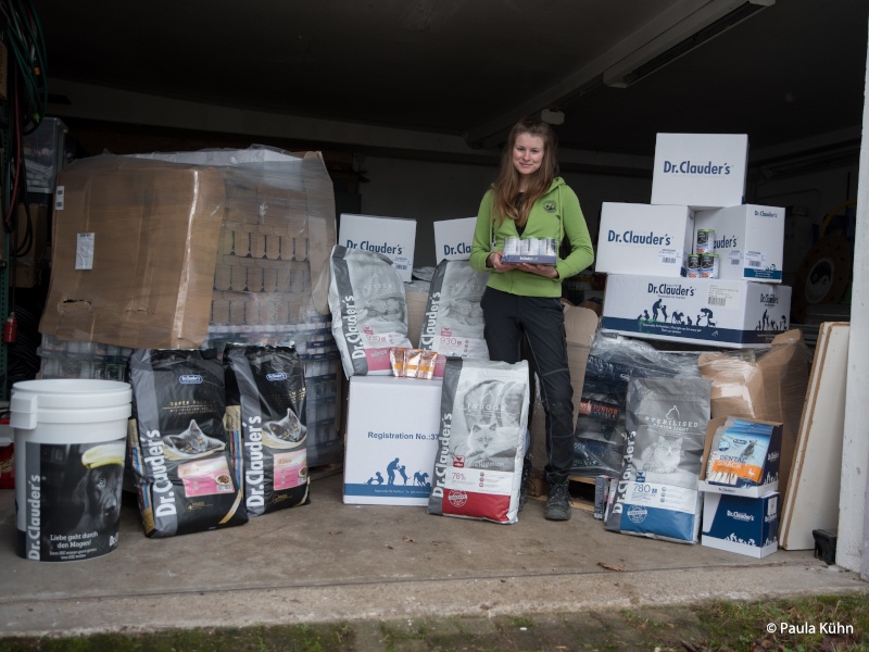 Am 4. Advent hatten unsere Schirmherren Ramona und Jürgen Drews auf Instagram und Facebook verkündet, dass der Futtermittelhersteller Dr. Clauders uns zu Weihnachten erneut mit einer großzügigen Futterspende bedacht hat. Wir staunten nicht schlecht und jubelten, als vor ein paar Tagen ein LKW uns zwei Paletten Katzen- und Hundefutter anlieferte. Tierfutter, das mehr als willkommen war, denn Dank der vielen hungrigen Mäuler, die wir in den letzten Monaten aufnehmen mussten, waren unsere Vorratsregale ratzeputz leergefegt. Nun aber biegen sich die Regalböden wieder und dafür möchten wir uns bei Ramona und Jürgen und dem Team von Dr.Clauders ganz herzlich bedanken.