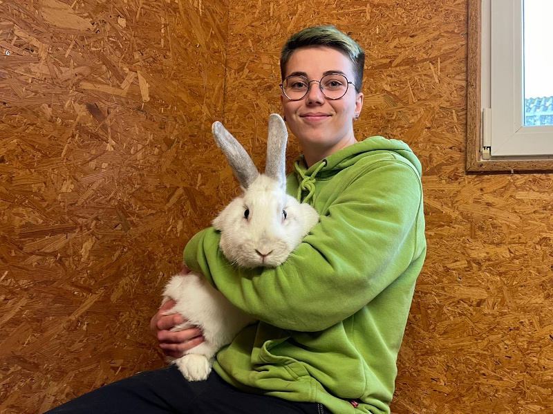 Foto: Tierpflegerin Lucy mit Fundkaninchen Fiete.
