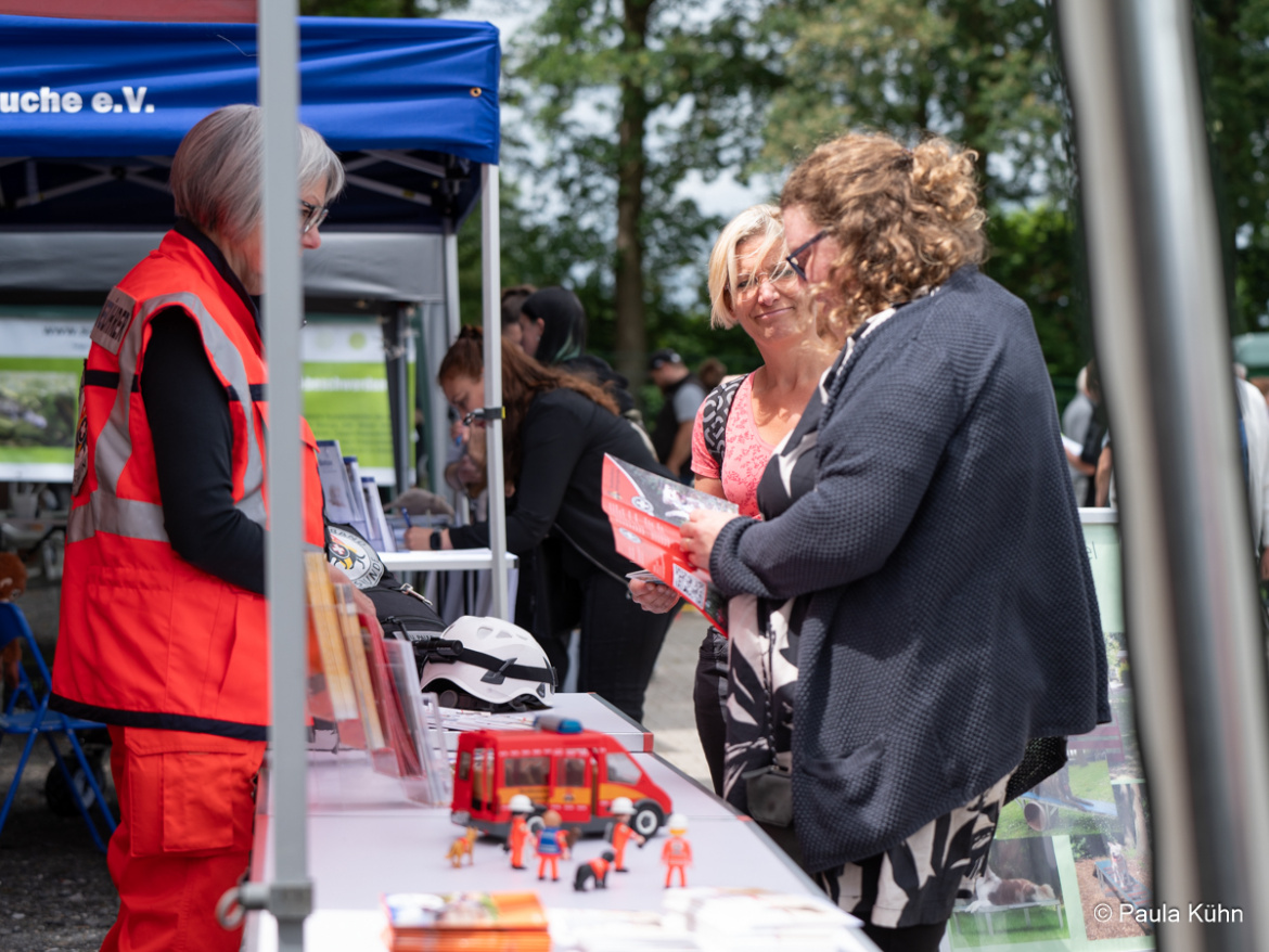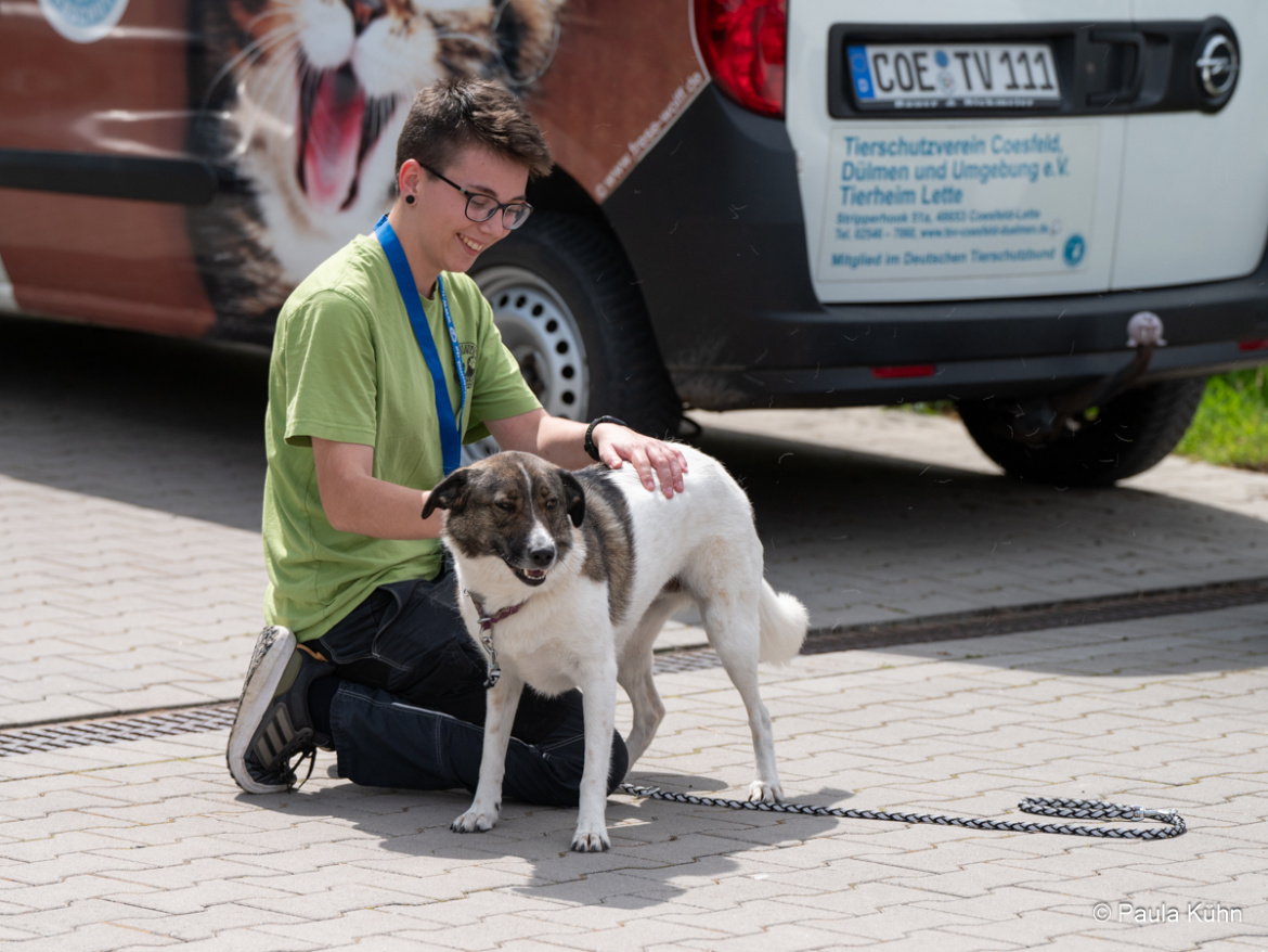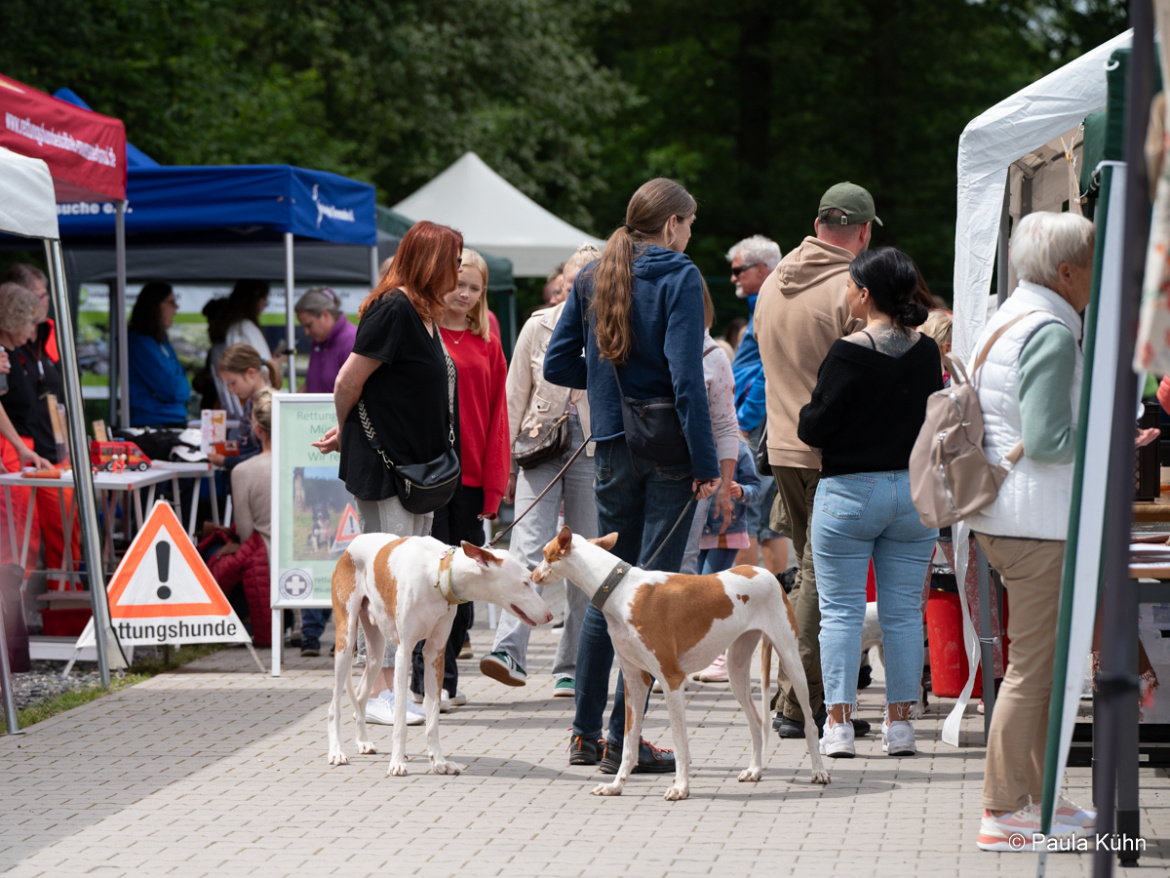 Das Interesse an den Tieren und an unserer Arbeit war riesig. Gerne haben wir allen Gästen das neue Tierheim gezeigt und unsere Arbeit im Tierschutz vorgestellt. Dicht gedrängt standen die Besucher am Zaun des Hundeauslaufes und bestaunten die Arbeit der BRH-Rettungshundestaffel Münsterland e. V.. Auch die Vorstellungsrunde einiger Tierheimhunde fand zahlreiche Zuschauer.