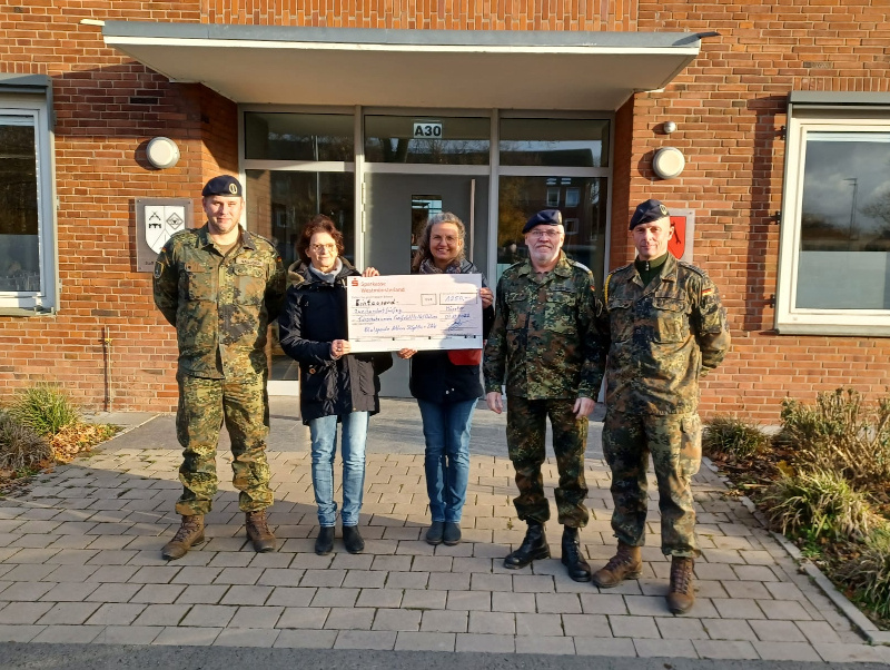 Die Bereitschaft Blut zu spenden ist bei den Soldaten und Soldatinnen der Lützow-Kaserne in Münster sehr groß. Und nicht nur kranken und verunfallten Menschen wird mit der oft lebensrettenden Blutspende geholfen. Auch unsere vierbeinigen Schützlinge profitieren davon. Die von der Uni-Klinik Münster gezahlten Aufwandsentschädigungen für die Blutspenden landen in einem großen Topf, der einmal im Jahr an gemeinnützige Vereine ausgeschüttet wird. Herr Kersting, Coesfelder und Oberstabsfeldwebel d.R., engagiert sich seit 15 Jahren ehrenamtlich für diese tolle Aktion. Wir durften uns über einen Scheck in Höhe von 1.250 Euro freuen, der uns heute in der Lützow-Kaserne überreicht wurde.