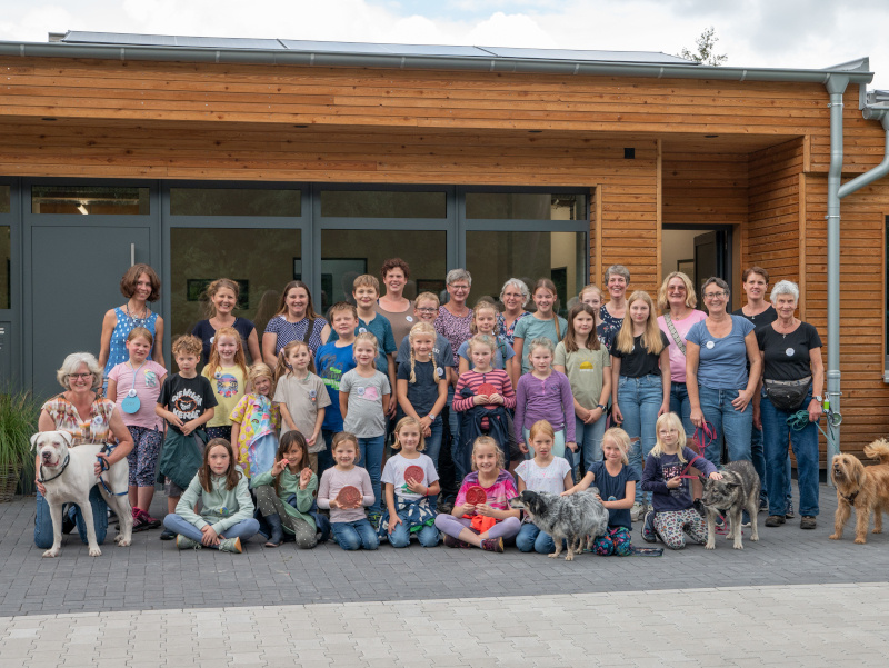 14.08.2023Unter dem Thema "Tierisch gut unterwegs in der Schöpfung" fand am Samstag der Kinderbibeltag in Goxel statt. Nach einem Spaziergang - natürlich mit einigen Hunden - kamen die Kinder (sogar trocken) am Tierheim an. Dort konnten sie sich gemeinsam mit Ulrike Fromme und Elke Kühn das Tierheim und seine tierischen Bewohner anschauen. Nach einer Stärkung mit Getränken und Kuchen machten sich die Kinder dann wieder auf den Rückweg zur Kirche in Goxel, wo zum Abschluss ein Gottesdienst gefeiert wurde. Wir vom Tierheim Nordkreis Coesfeld haben uns wirklich sehr über den netten Besuch gefreut.