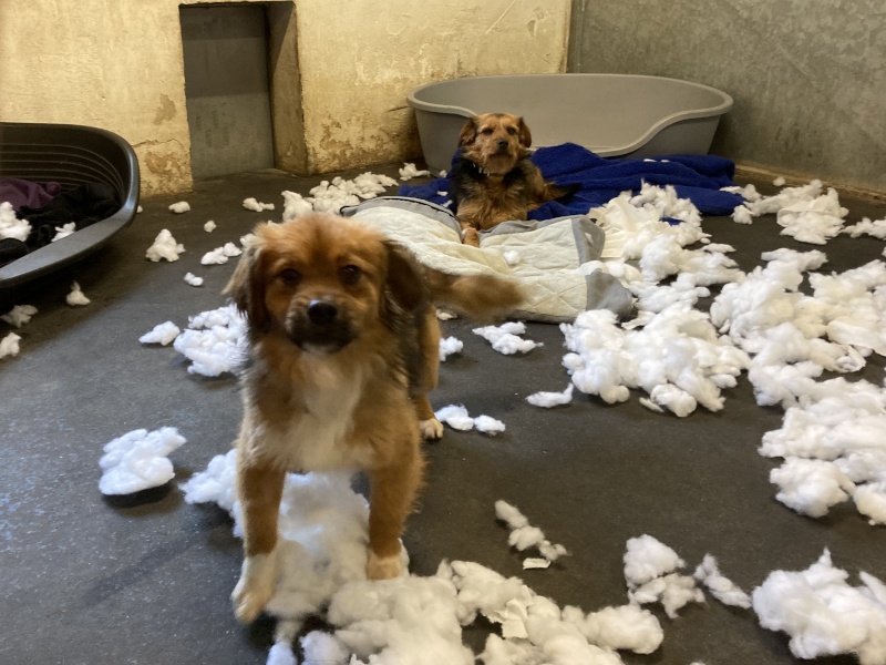 12.01.2022... alle anderen Zwinger blieben zum Glück verschont. Der Winterdienst - in Gestalt einer Tierpflegerin - konnte mit Besen und Kehrblech den Zwinger schnell wieder räumen. Sehr zum Leidwesen von Dora und Ben, die gerne noch länger "Frau Holle" gespielt hätten.