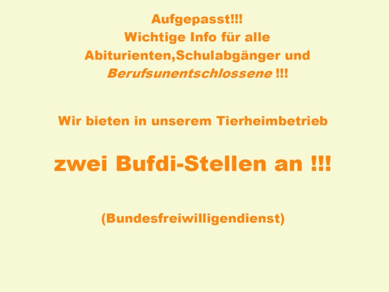 für Bundesfreiwilligendienstleistende (Bufdi) im Tierheim Lette an.