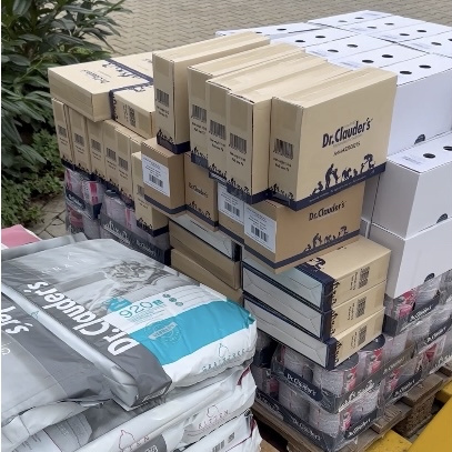 Und wir dürfen mitfeiern!!! Anlässlich seines 80.Geburtstages wurden wir von der Futtermittelfirma Dr.Clauders mit einer großen LKW-Ladung hochwertigen Katzen- und Hundefutters im Wert von 8.000 Euro überrascht. Ist das nicht irre toll? Ein großes Dankeschön an den Geschäftsführer Malte Hübers und die Mitarbeiterin Anja Kirsch, die diese großartige Idee hatte.