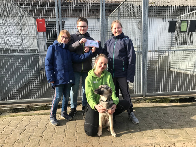 04.03.2020Seit geraumer Zeit haben Charlotte, Darvin und Jana in Nottuln die Umgebung nach achtlos weggeworfenen Pfandflaschen abgesucht, sie eingesammelt und beim Getränkehändler in bare Münze umgewandelt. Sowohl der Naturschutz als auch der Tierschutz profitieren nun von ihrem Engagement. Vergangenen Mittwoch kamen die drei ins Tierheim nach Lette, um den sagenhaften Betrag von über 50 Euro für unsere Tierheimtiere zu spenden. Wir sind begeistert von so viel Einsatz und haben uns gerne mit einer kleinen Privatführung durch das Tierheim revanchiert. Die Spende werden wir für den Kauf artgerechter Leckerchen verwenden, um den Tieren den Tierheimalltag ein wenig zu versüßen.