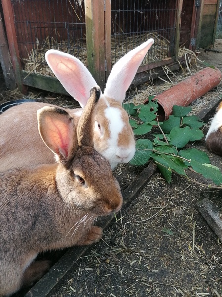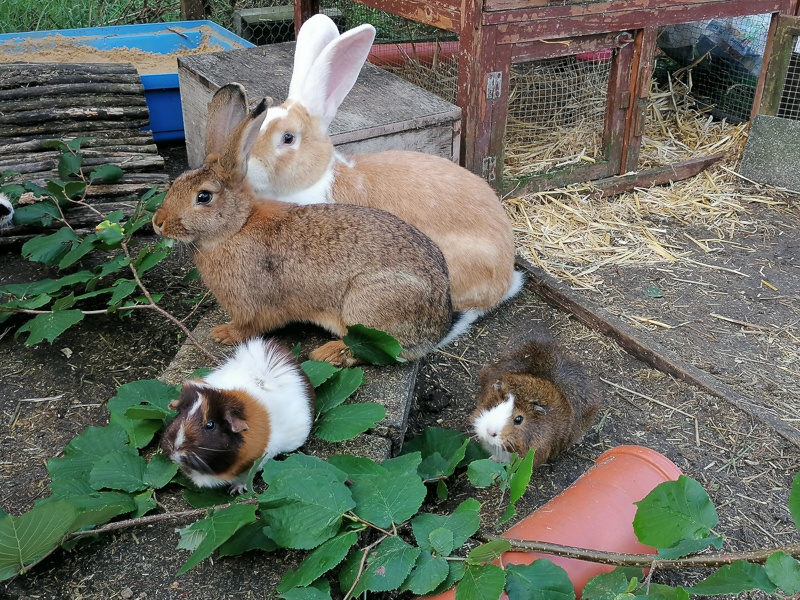 Die beiden verstehen sich prima und auch mit den Meerschweinchen klappt es. Sie lassen sich sogar von den Meerschweinchen das Futter aus der Schnute klauen