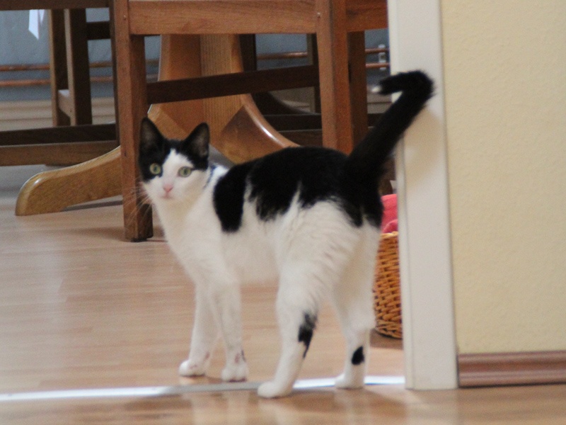 mal wieder ein paar Zeilen zu Milka. Dies Katze ist echt eine Bereicherung für uns. Sie hat nur Blödsinn im Kopf, aber im spaßigem Sinne. Nun sitzt sie auch mit bei uns am Tisch oder bei mir am Stuhl, wenn wir am essen sind. Sie weiß auch schon wie sie mich immer um den Finger wickeln kann, so dass immer etwas für sie abfällt. Da ist eine halbe Bratwurst oder morgens eine Scheibe Wurst nichts. Morgens oder wenn ich von der Arbeit wieder komme ist erstmal Streichelzeit. Dann tut sie so als wenn sie nie beachtet werden würde. Also, wir denken das wir die richtigen Leute waren, die sie aus dem Tierheim geholt haben.