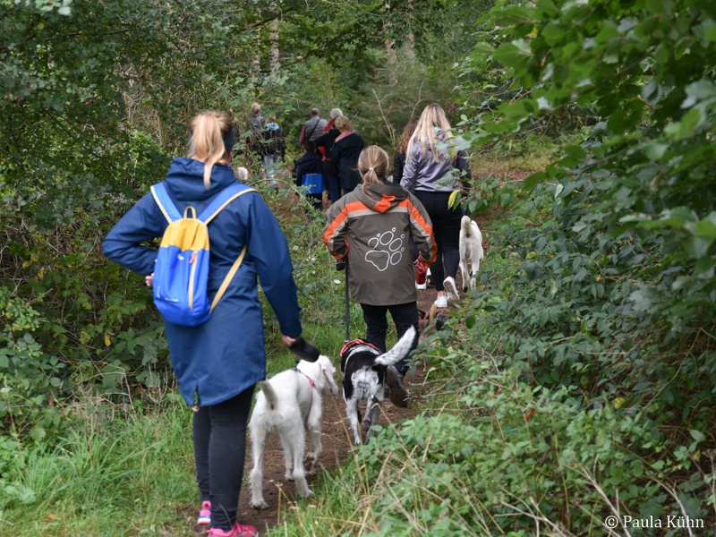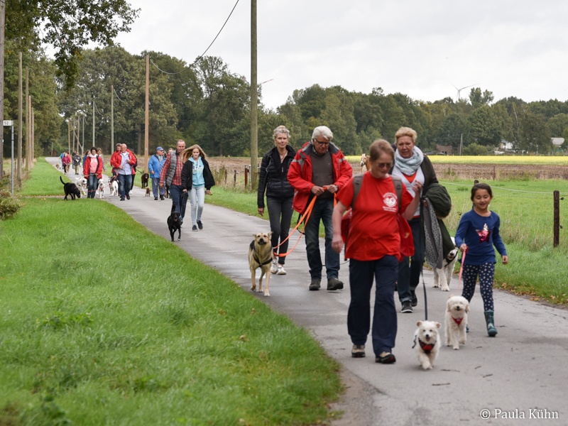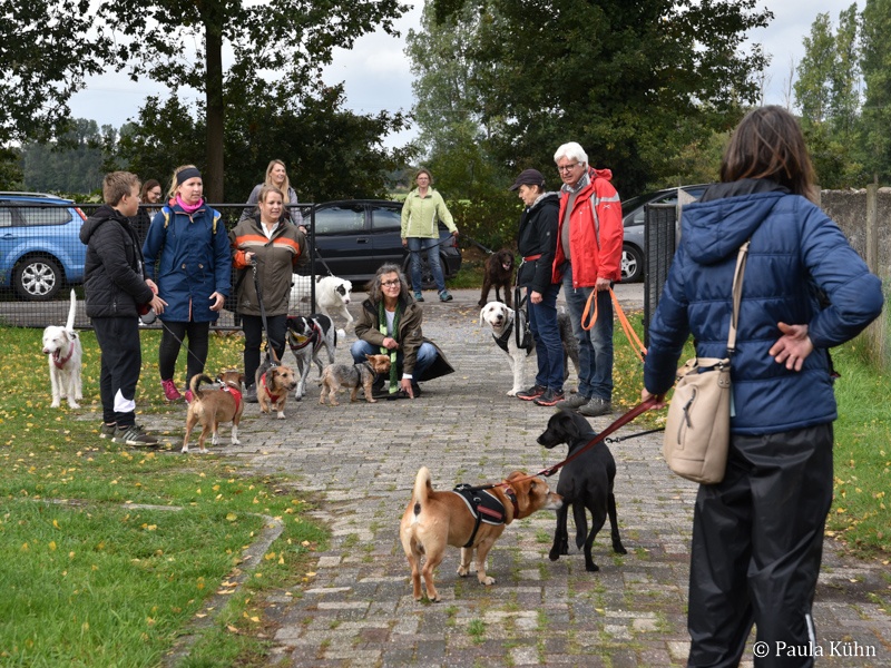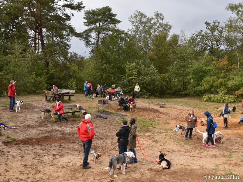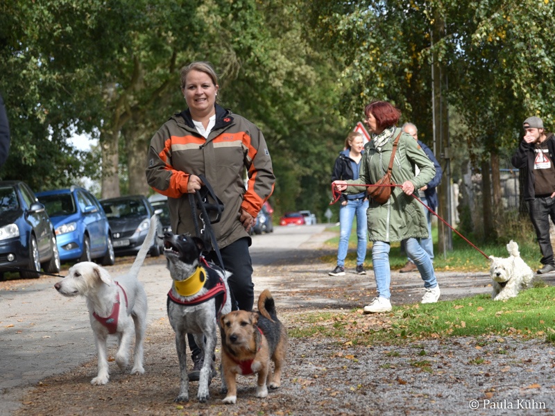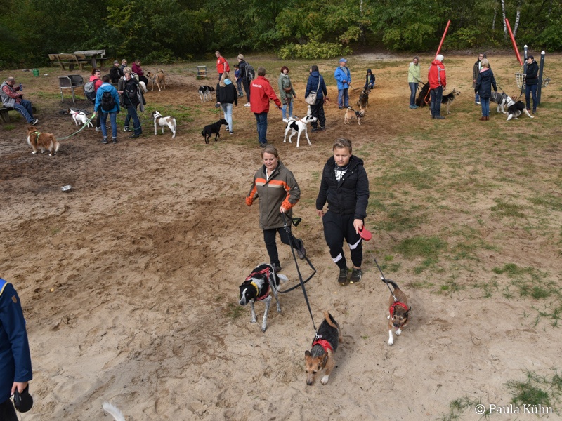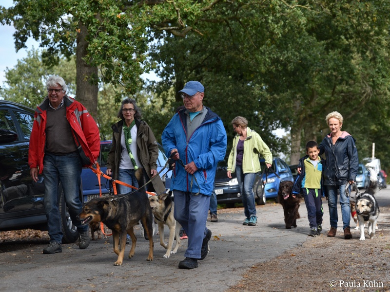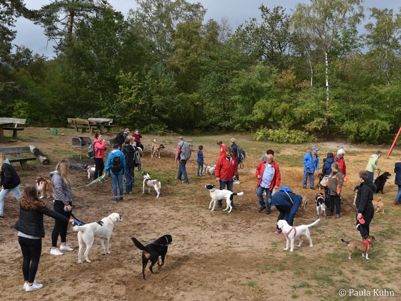 29.09.2019 Der Regengott hatte ein Einsehen mit den lauffreudigen Vierbeinern und ihren Herrchen und Frauchen, die zum Tierheim gekommen waren, um gemeinsam mit den Tierheimhunden eine schöne Runde durch den Letter Bruch zu drehen. So hatte der Regen pünktlich zu 14 Uhr aufgehört, als sich die Meute auf den Weg machte. Der traditionelle Herbstspaziergang ist auch für unsere ehemaligen Schützlinge immer eine beliebte Gelegenheit einmal wieder das Tierheim zu besuchen. Da ist die Wiedersehensfreude groß!