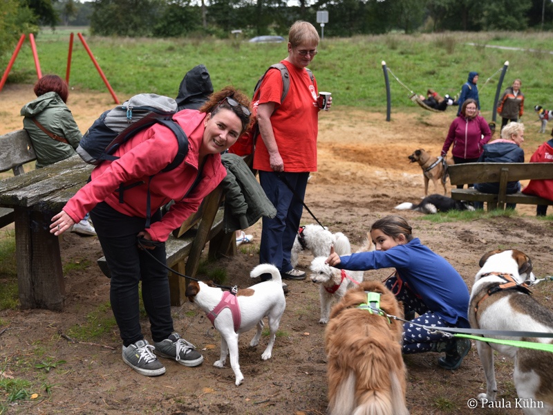 Nach einem Stopp auf dem Merfelder Grillplatz, wo eine Erfrischung auf die Zwei- und Vierbeiner wartete, wanderte die Gruppe nach einer guten Stunde wieder zurück zum Tierheim. Bei Kaffee und Kuchen gab es einen regen Austausch unter den Hundebesitzern, die sich viel über ihre Tiere zu erzählen hatten.