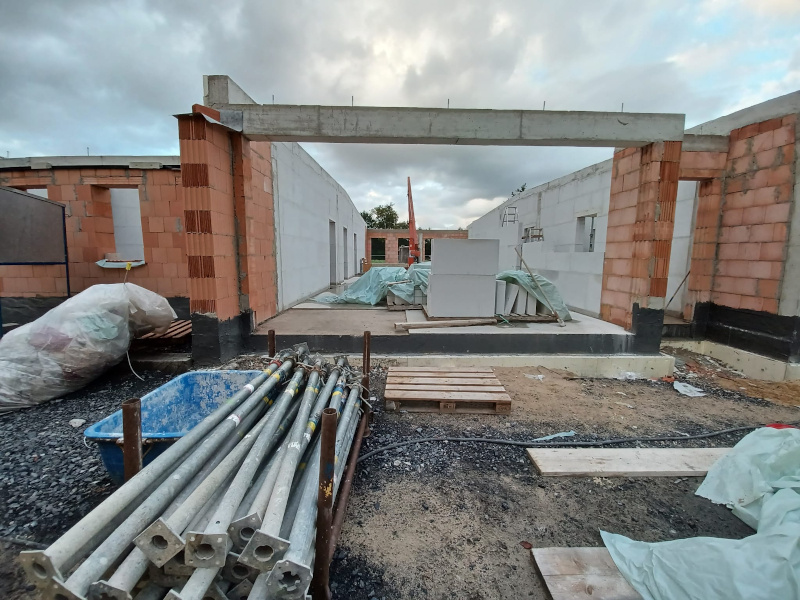 Die Wände sind (fast) alle hochgezogen. Lediglich die Mauern für den Empfangstresen und das Büro im Eingangsbereich stehen noch auf der To-Do-Liste der Maurer. Die Bedachung, die lt. ursprünglicher Planung schon vergangenen Monat hätte erfolgen sollen, hat sich etwas nach hinten verschoben, da andere Gewerke vorgezogen werden mussten. Aber wir sind nach Aussage unseres Architekten noch immer im Zeitplan und freuen uns schon wie Bolle auf den Umzug im März 2023.