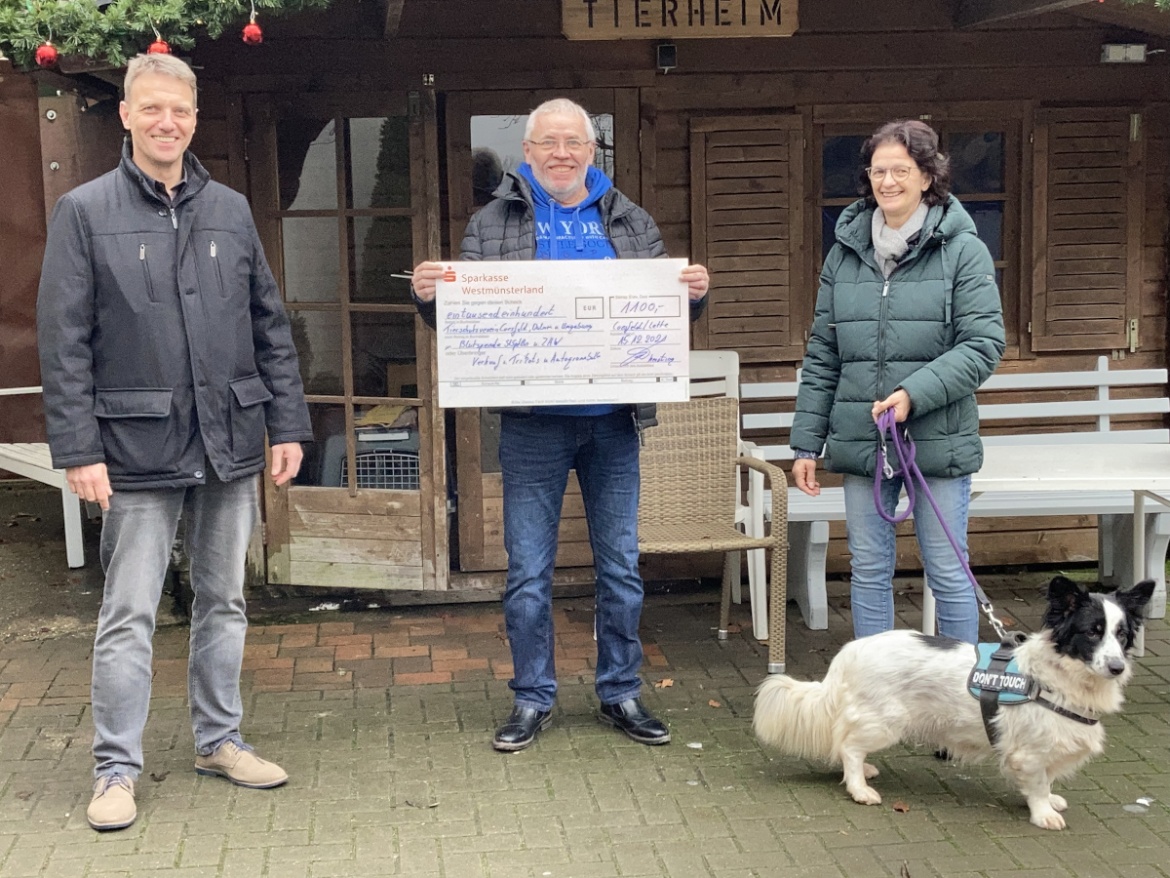 15.12.2021Einen großen Scheck hatte Oberstabsfeldwebel d.R. Michael Kersting im Gepäck, als er uns heute im Tierheim Lette besuchte. Er und weitere Soldaten hatten durch fleißiges Blutspenden, durch die Versteigerung von Bundesligatrikots und Autogrammbällen eine beachtliche Summe zusammengetragen, wovon er heute 1.100 Euro zum Wohle unserer Tierheimtiere an Jürgen Hille und Birgit Roesmann vom Vorstand unseres Vereines überreichte.