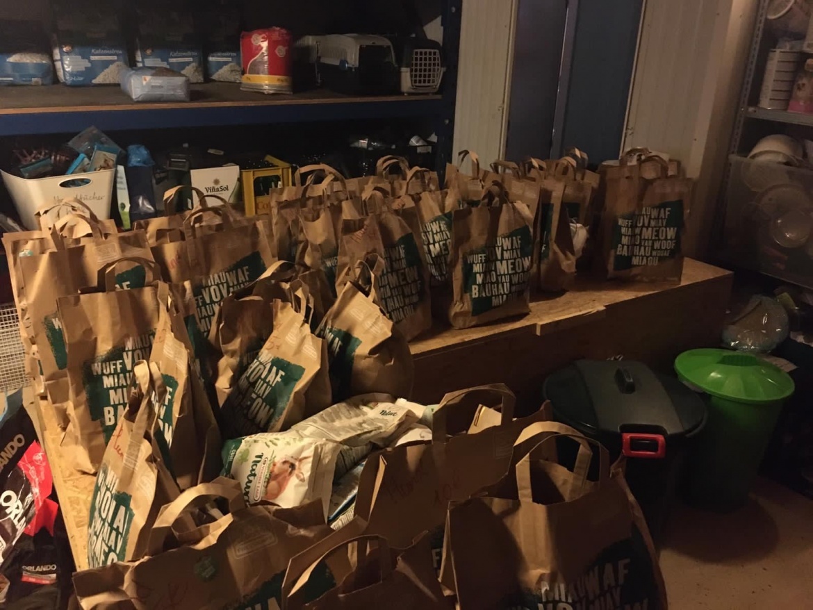 Vergangenen Freitag erhielten wir einen Anruf vom Fressnapf in Dülmen, wo ein imaginärer Weihnachtsmann unsere Angestellten im Tierheim bat, ihm beim Transport der Weihnachtsgeschenke zu helfen. Unter dem Wunschbaum stapelten sich nämlich bereits die Geschenktüten, die Kunden für unsere Tierheimtiere gepackt hatten.