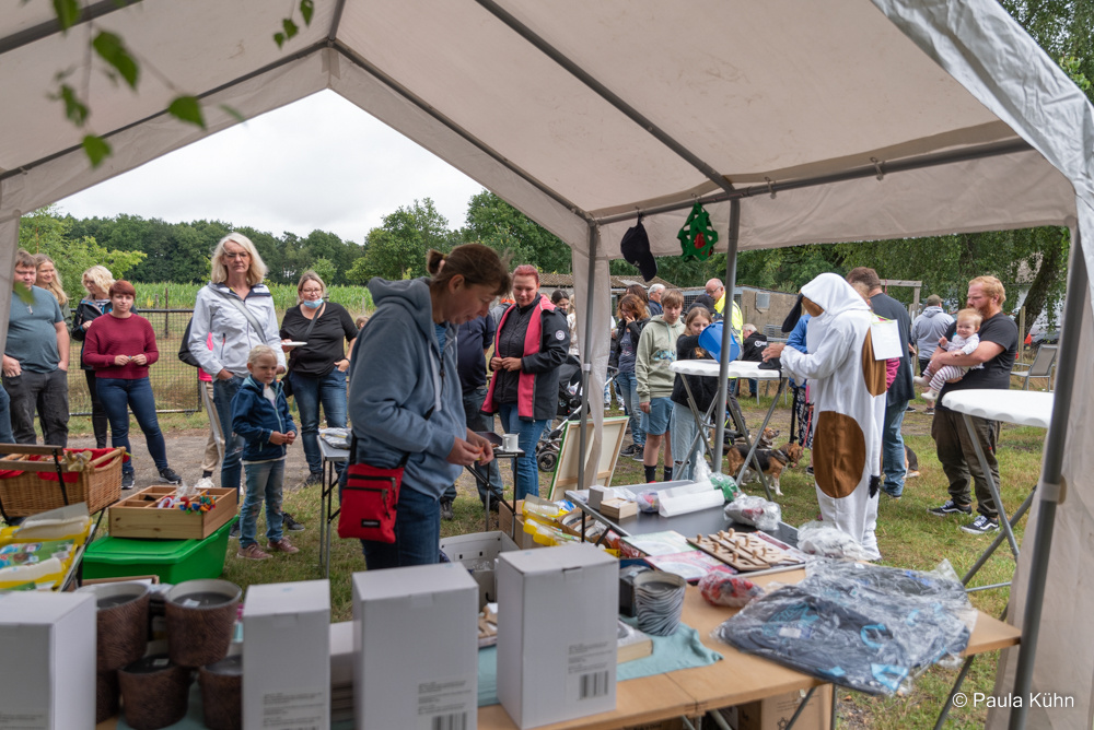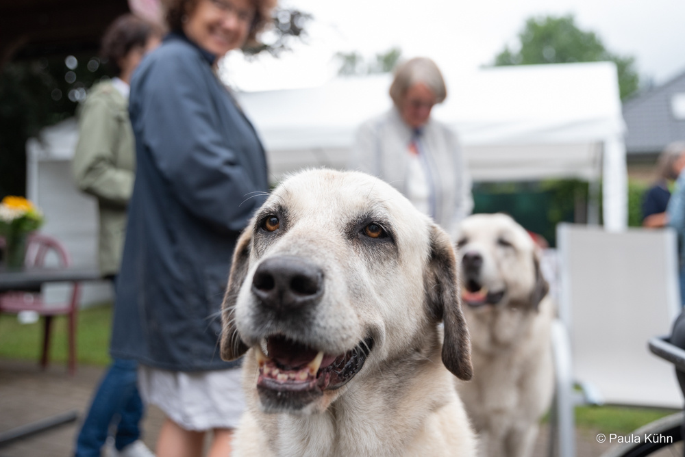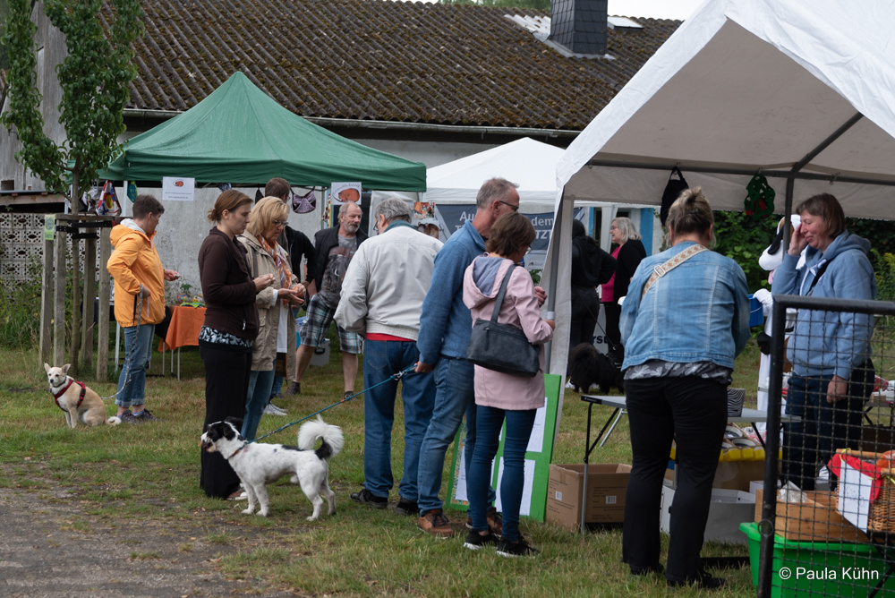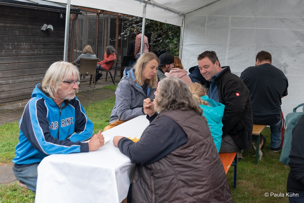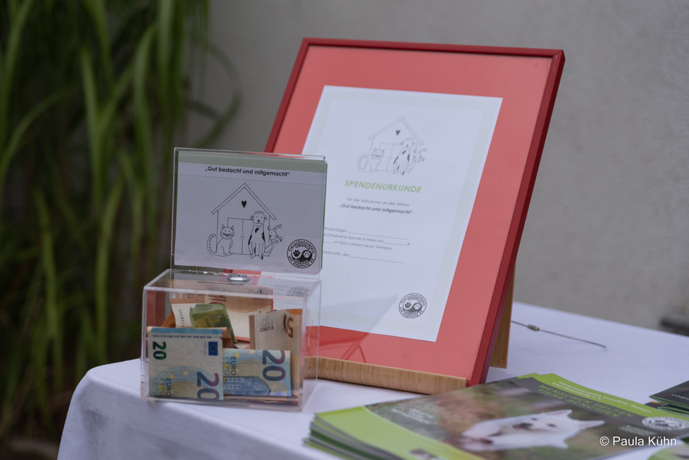 Trotz des bescheidenen Wetters waren viele, viele Besucher unserer Einladung gefolgt. Das Interesse an Tierheimführungen mit einem Blick hinter die Kulissen war riesengroß und kaum zu bewältigen. Auch unsere Spendenaktion "Gut bedacht und mitgemacht" ist super angelaufen. Insgesamt 112 qm Dachfläche kamen so durch Spenden für den Neubau zusammen. Die Aktion läuft online bis Ende August weiter.