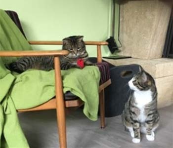 Theo und Detlef, genannt Deffi, sind inzwischen gute Kumpels geworden und warten sehnsuchtsvoll auf die Freiheit. Sie sind inzwischen ganz entspannt. Katzenklappentraining ist erfolgreich absolviert, sodass sie nächste Woche endlich raus dürfen.