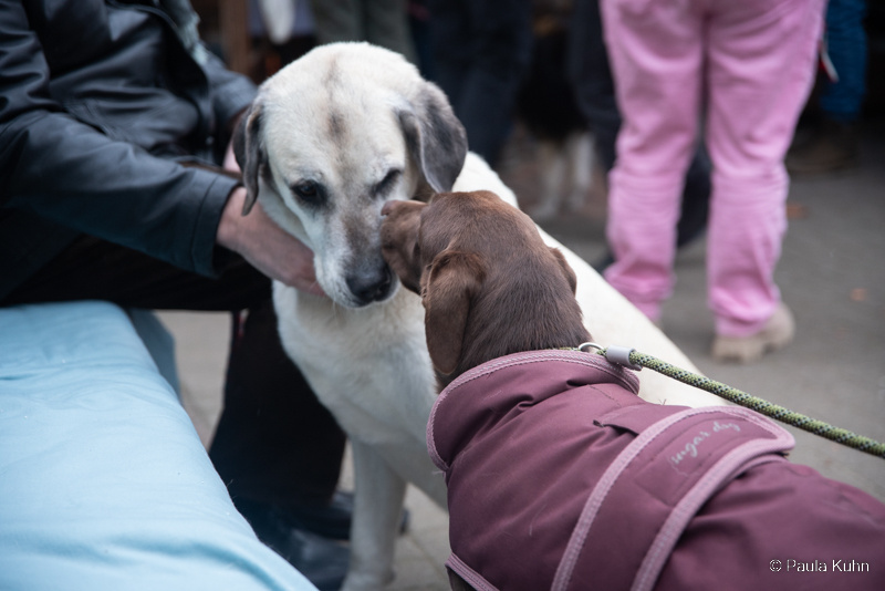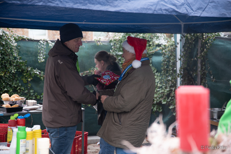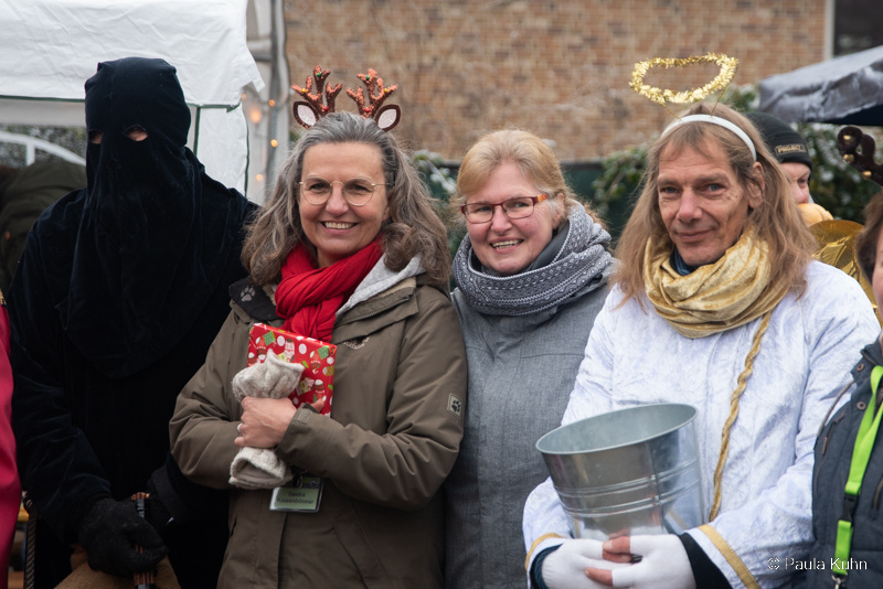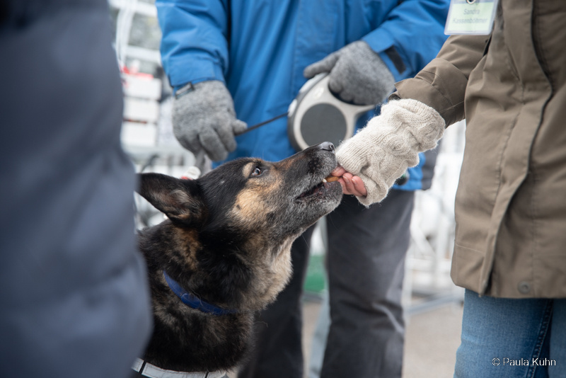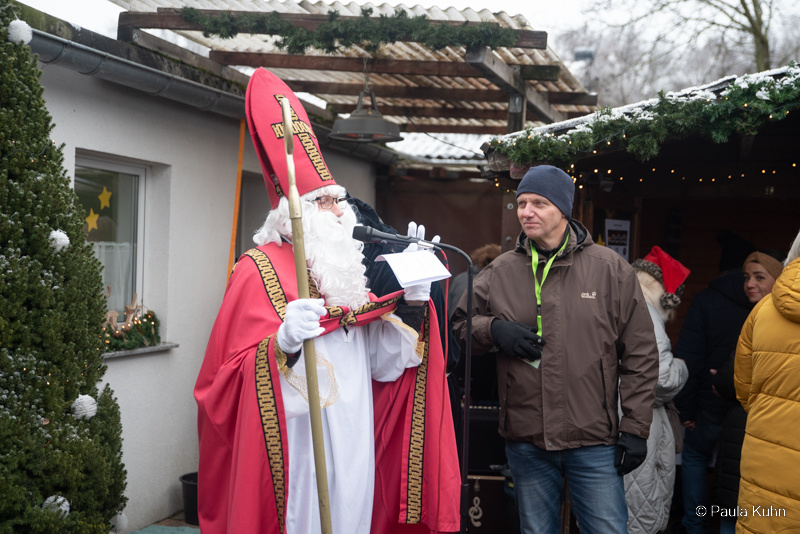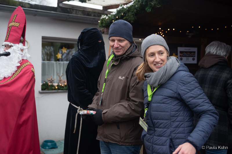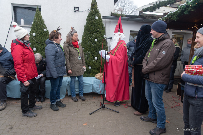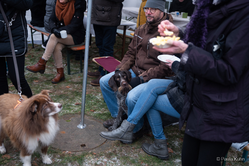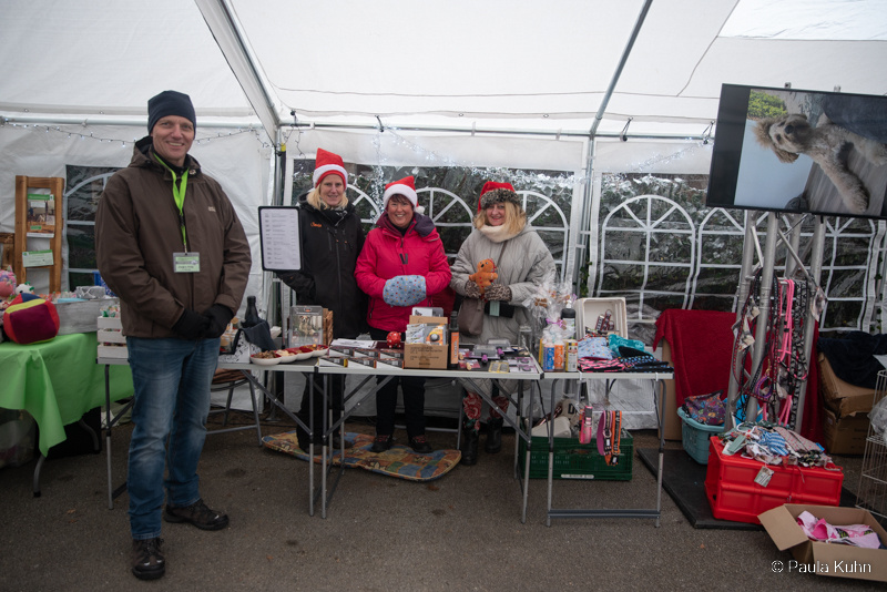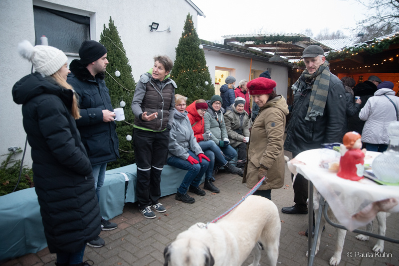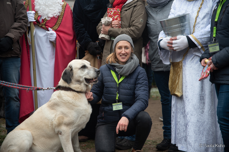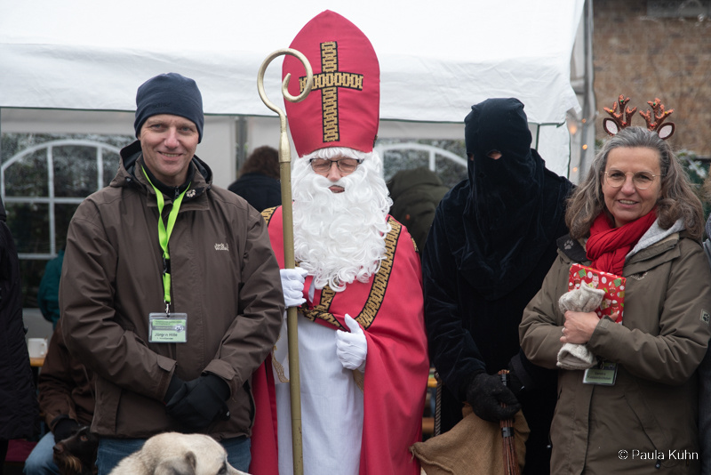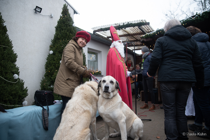 19.12.2022Viele Besucher fanden trotz der eisigen Witterung zu uns ins Tierheim. Und die Wenigsten kamen mit leeren Händen. Futtersäcke, Decken, Spielzeug wurden als Präsente für unsere Tiere abgegeben. Auch die aufgestellte Spendenbox füllte sich langsam, aber stetig. Die Lose der Tombola fanden schnell Abnehmer. Schon nach kurzer Zeit stand ein Hund als Gewinner des 1. Preises fest. Sein Frauchen hatte nämlich den ersten Preis gezogen: einen Behandlungsgutschein in einer Hundephysiotherapiepraxis . Über den 2. Preis, einen Massage-Gutschein, durfte sich nun ein (menschlicher) Besucher freuen. Der 3. Preis, ein Körbchen mit allerlei Leckereien, regte schon beim Anblick den Speichelfluss des glücklichen Gewinners an. Warme Getränke und Speisen wurden gestern den Kalten eindeutig vorgezogen, wärmten sie doch bei frostigen Außentemperaturen für einen kurzen Moment nicht nur den Magen, sondern auch die Finger. Und nicht nur bei den Kindern, sondern auch bei den Autofahrern war der alkoholfreie Apfelpunsch sehr beliebt. Die Hundekekse fanden unter den vierbeinigen Besuchern reißenden Absatz. Unter ihnen befanden sich viele ehemalige Schützlinge, die auf eine kurze Stippvisite zum Tierheim kamen. Der Nikolaus erschien pünktlich um 14.00 Uhr und wie bereits angekündigt, hatte er dieses Mal sein goldenes Buch nicht nur zur Deko dabei. Aber zum Glück fand er nur freundliche Worte. Besonders hob er die Leistung unserer neuen Tierheimleiterin Carolin Hommel und das Engagement dreier unermüdlich agierender Damen vom Vorstand lobend hervor. Neben dem Nikolaus als kirchliche Eminenz durften wir auch zwei weibliche und weltliche Würdenträger begrüßen. Frau Diekmann als Bürgermeisterin von Coesfeld und Frau Dirks als Bürgermeisterin von Billerbeck mischten sich unter die Gäste der Tierweihnacht. Ein bißchen Wehmut klang bei allen Gesprächen mit - nach 20 Jahren Tierweihnacht war dies die letzte am Standort in Lette. Aber natürlich werden wir die Tradition fortsetzen..... am neuen Tierheim in Flamschen unter besseren Bedingungen, mit stabilen Stromverbindungen, ausreichendem Platz und modernen sanitären Anlagen. Jauchzet und frohlocket....