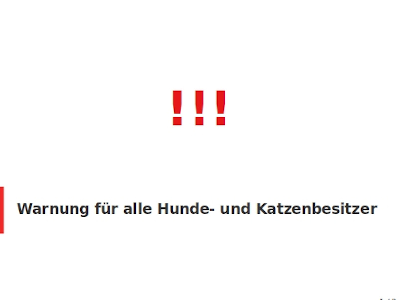 09.11.2023Der Bund praktizierender Tierärzte und die Tierärztliche Vereinigung für Tierschutz warnt vor einem Rattengift (alpha-Chloralose), das neu im Handel ist und für Hunde und Katzen schon in kleinsten aufgenommenen Mengen gefährlich werden kann. Mehr dazu hier!