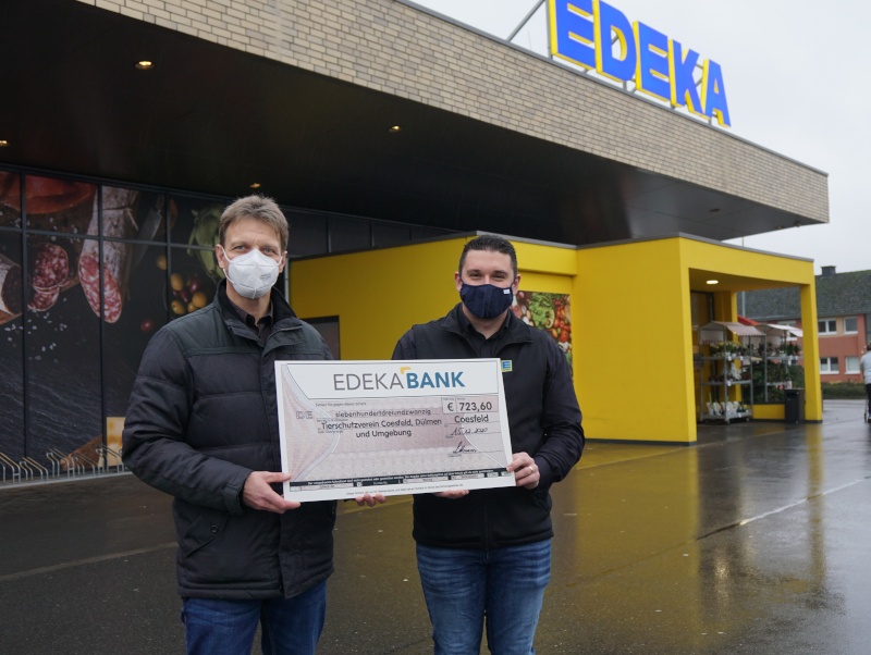 Gestern konnte Jürgen Hille, erster Vorsitzender unseres Vereines, den Scheck in Höhe von 723,60 Euro entgegennehmen. Wir bedanken uns bei allen Edekakunden für ihre Unterstützung.