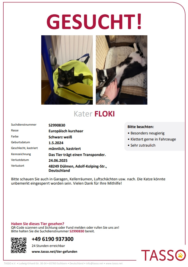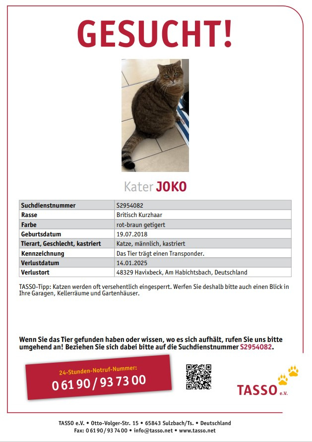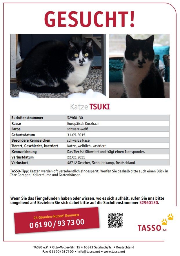 Die Anzeigen der vermissten Tiere werden aus Platzgründen nach einem halben Jahr von der Homepage genommen.