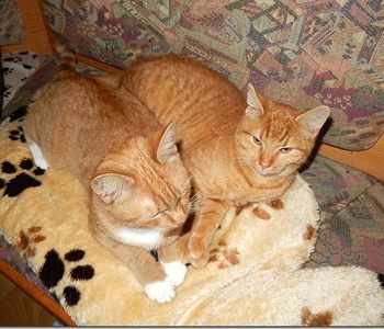 Die beiden fühlen sich bei uns wohl. Sie sind sehr verschmust. Toben miteinander, kuscheln gerne zusammen